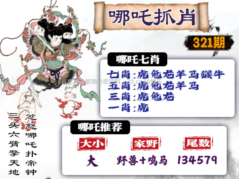 | 321期: ①七肖中特:虎兔龙羊马猴牛 ④精准六尾:134579 |